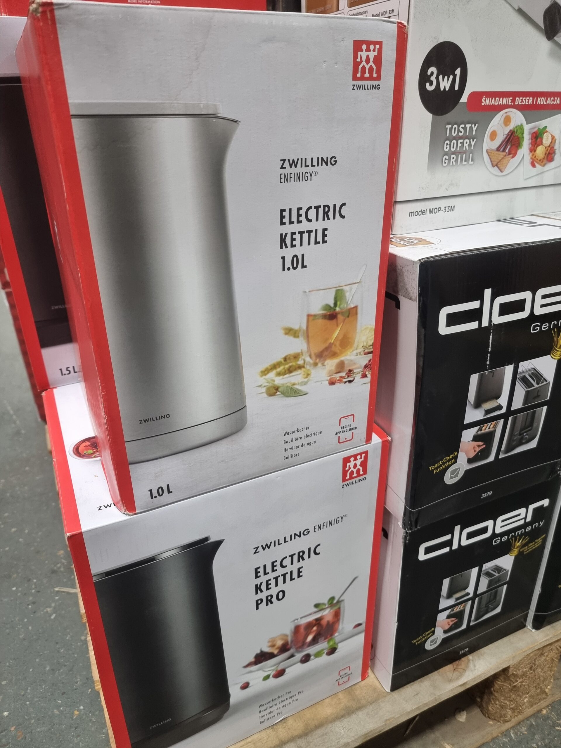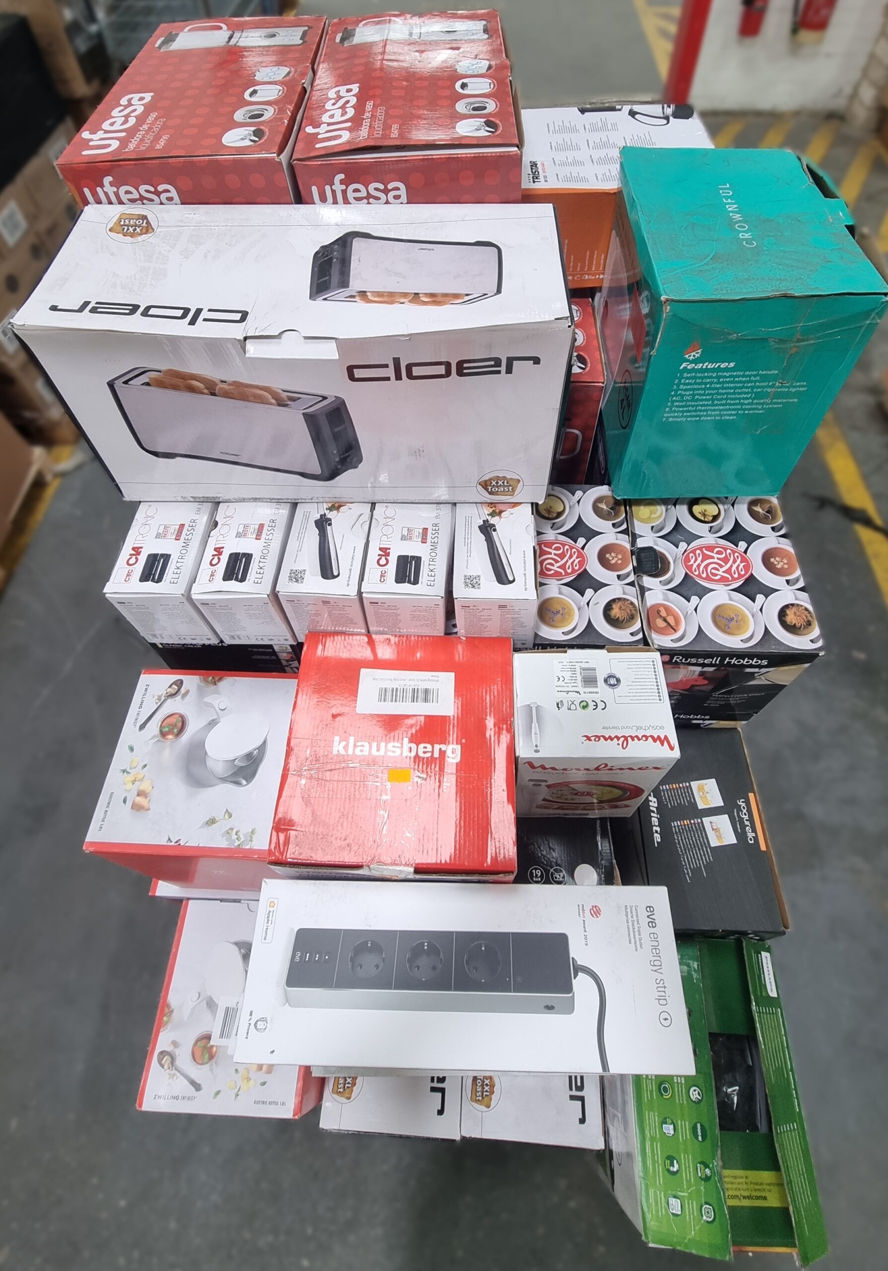 PALLET OF 68 X ASSORTED KITCHEN APPLIANCES TO INCLUDE BOSCH, DELONGHI, NESPRESSO, RUSSELL HOBBS, ZWILLING, TEFAL, UFESA, CLOER* EU PLUGS* ITEMS MUST BE EXPORTED OR ALTERNATIVELY HAVE THE PLUG CONVERTED BEFORE RESALE IN THE UK. BY PURCHASING THIS STOCK, YOU AGREE TO THESE TERMS OF SALE.
